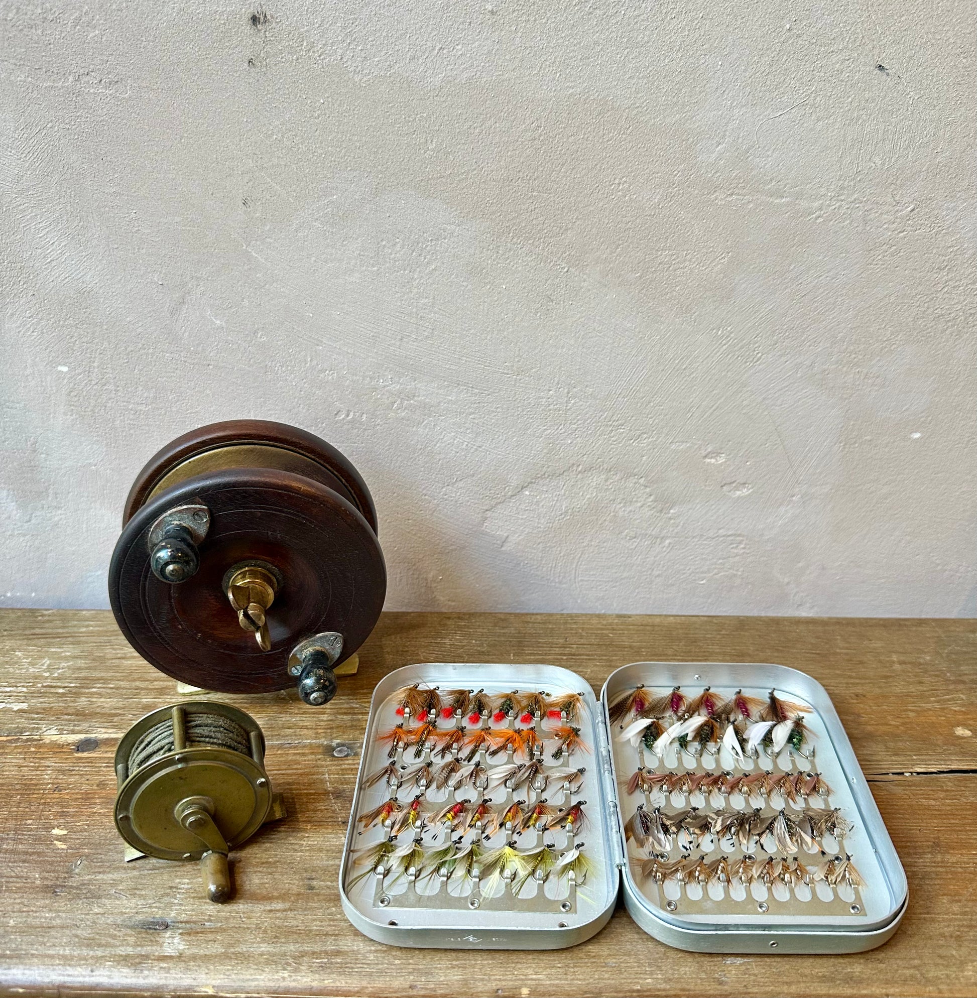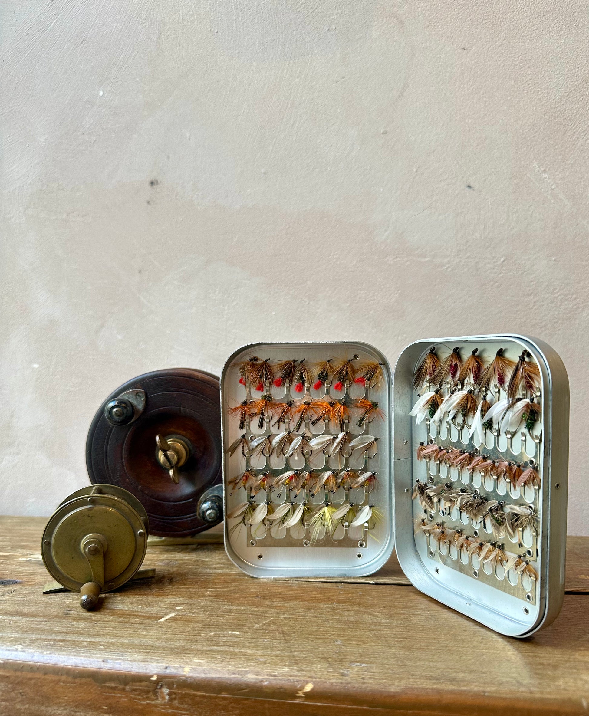 Vintage Aluminium Fly Fishing Box with Hand-Tied Flies