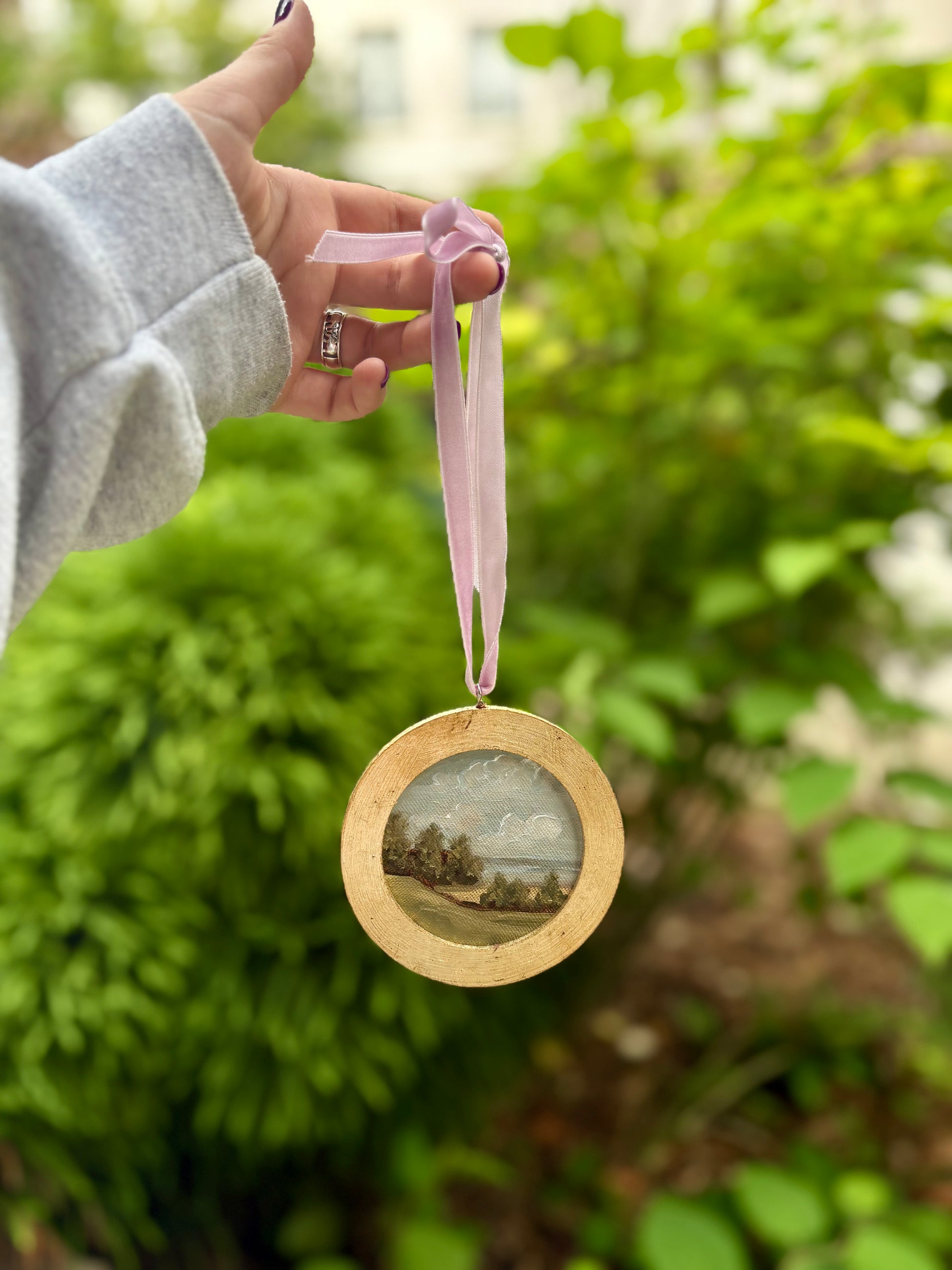 A tiny window onto the French countryside, this original miniature oil painting was created en plein air by artist Tina Stephens. Painted outdoors directly from life, each brushstroke captures the fleeting light and atmosphere of the moment—whether a soft sky, a rustic roofline, or a quiet landscape.