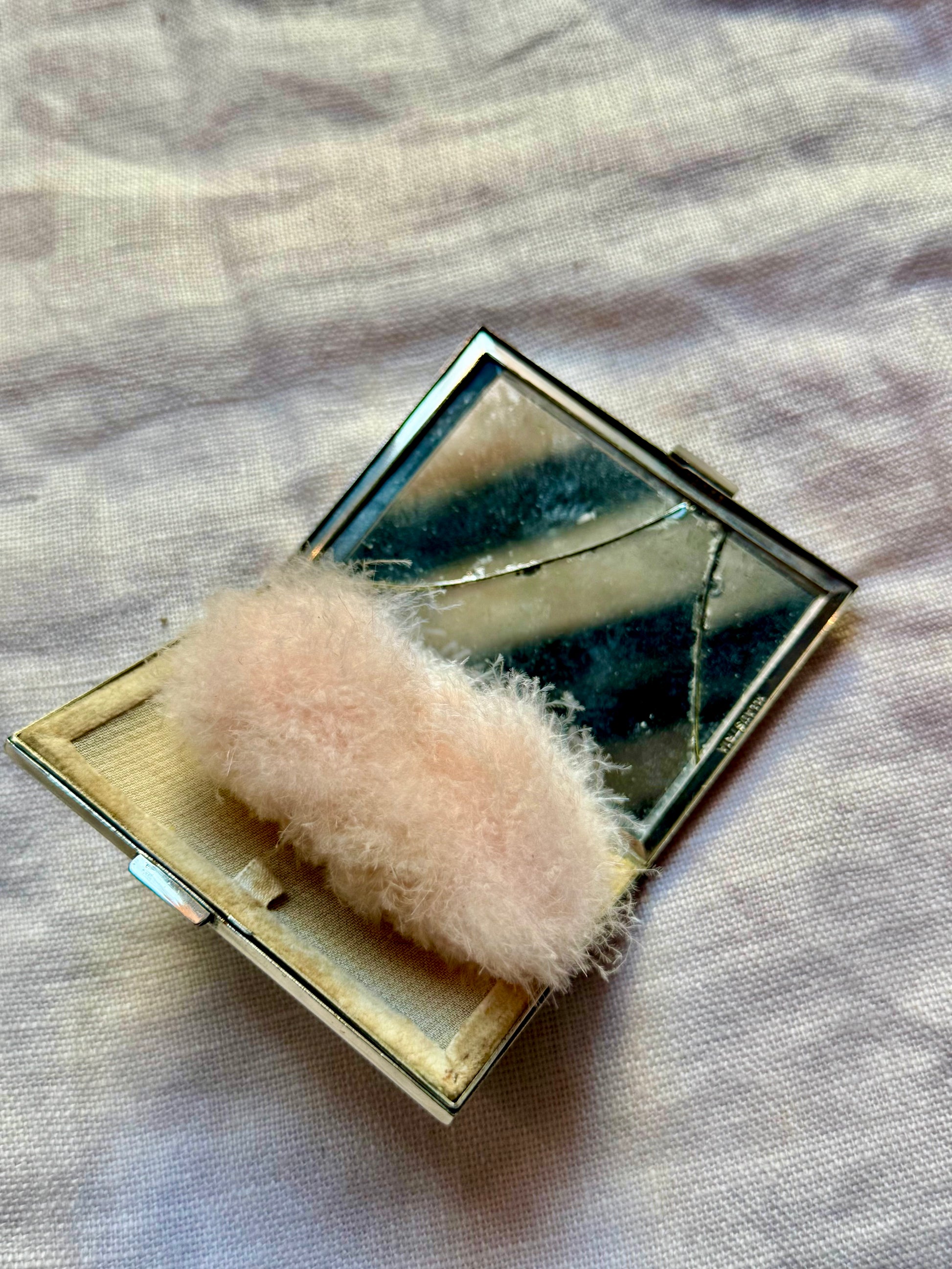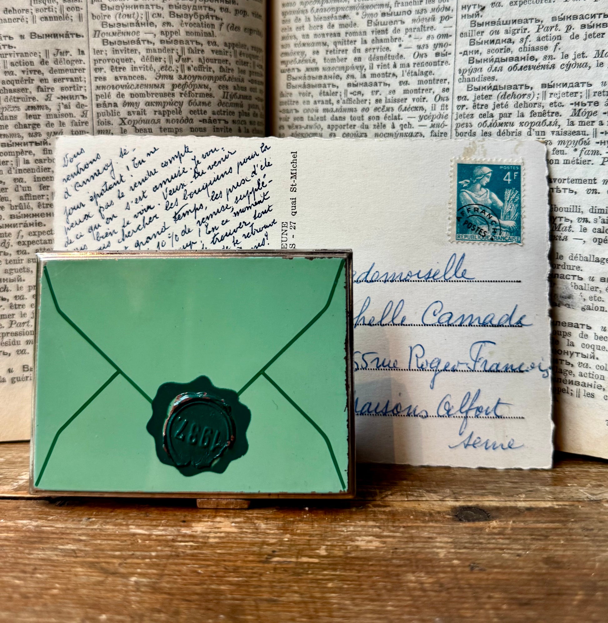 This compact, a little souvenir from 1937, is a unique piece of history, a little Paris love letter if you will. Found on one of Nessy's treasure hunts, other rare examples have been sold at auction through Christies in 2011 for over $2,700 and remain a special collectors item. The extremely rare souvenir from France's last World's Fair includes a real genuine stamp from the fair and wax seal, a true relic of prewar France.