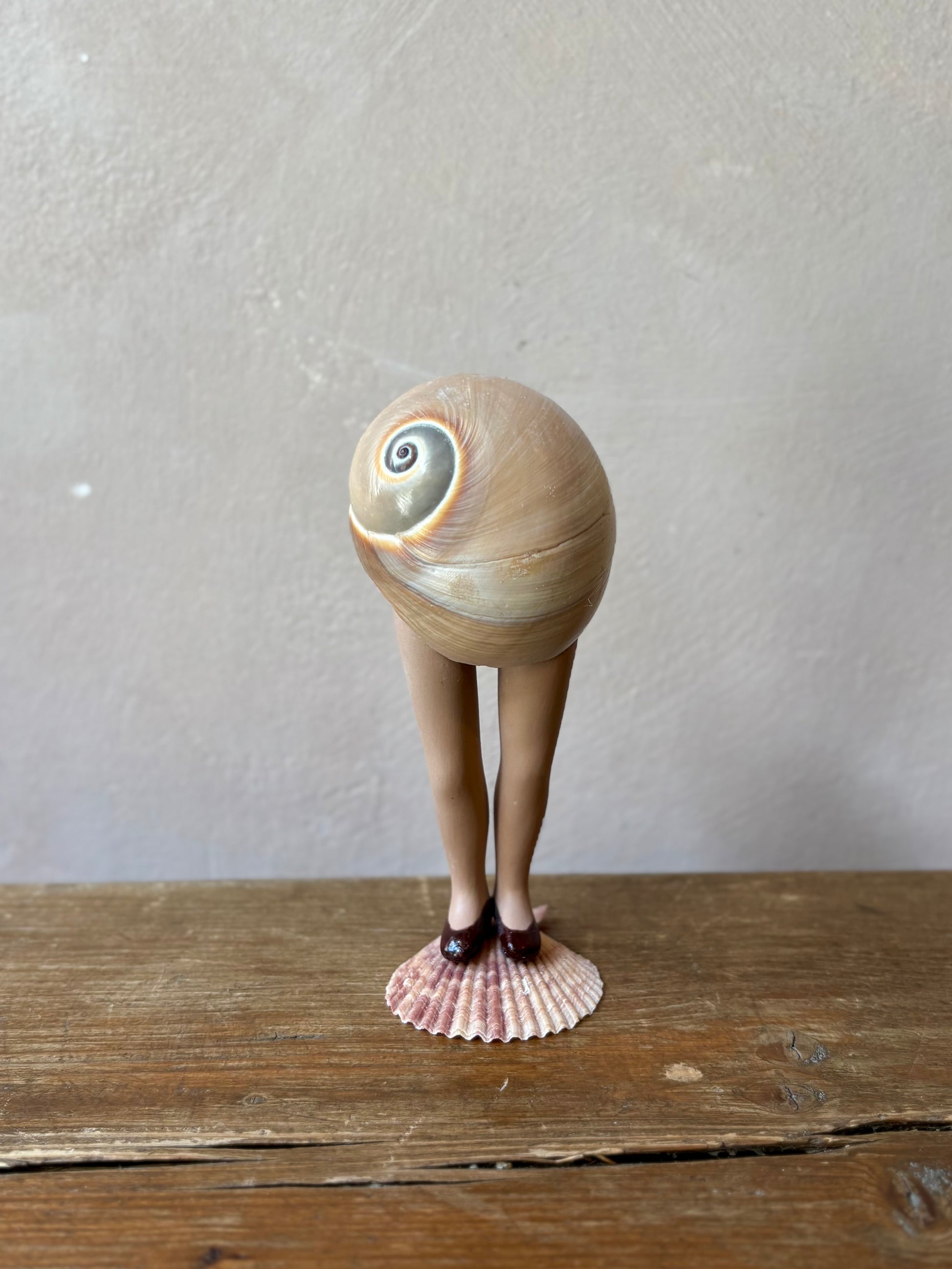 Handmade in Paris by artist Maïssa Toulet, this whimsical shell figure blend natural found objects with vintage doll limbs to create surreal, poetic characters. Each piece is a tiny theatre of imagination: part sculpture, part dream.